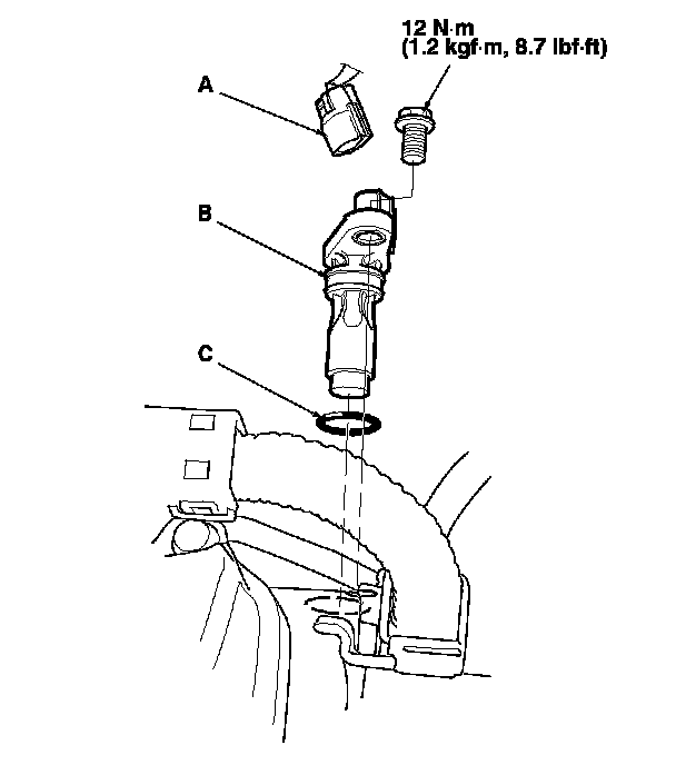4. Install the parts in the reverse order of removal with a new O-ring (C).