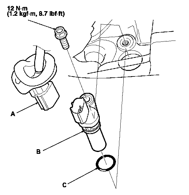 4. Install the parts in the reverse order of removal with a new O-ring (C).