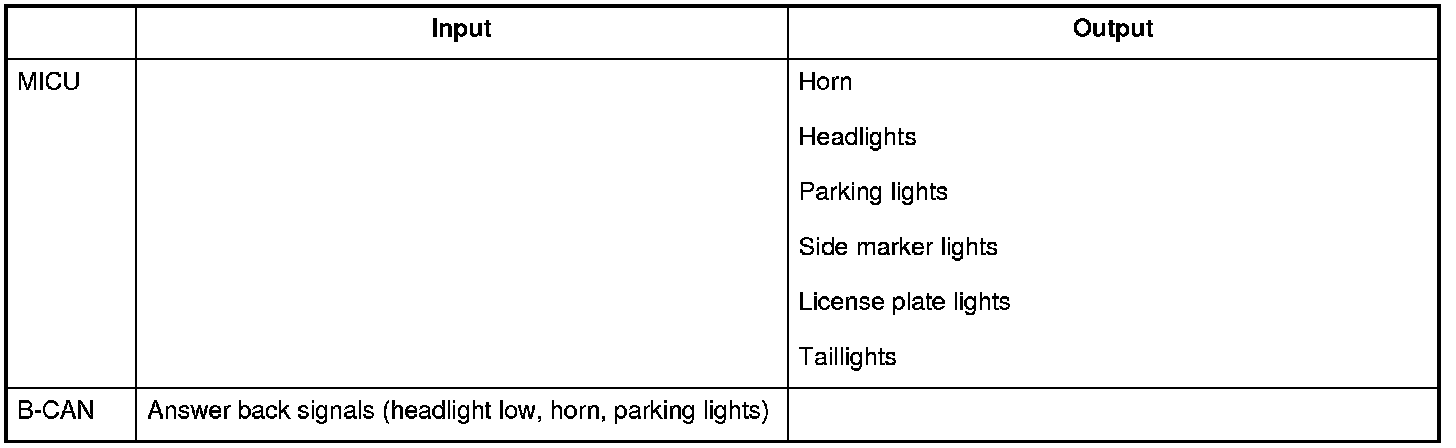 The MICU control of the lighting system and horn is based on inputs from each switch and the B-CAN data.