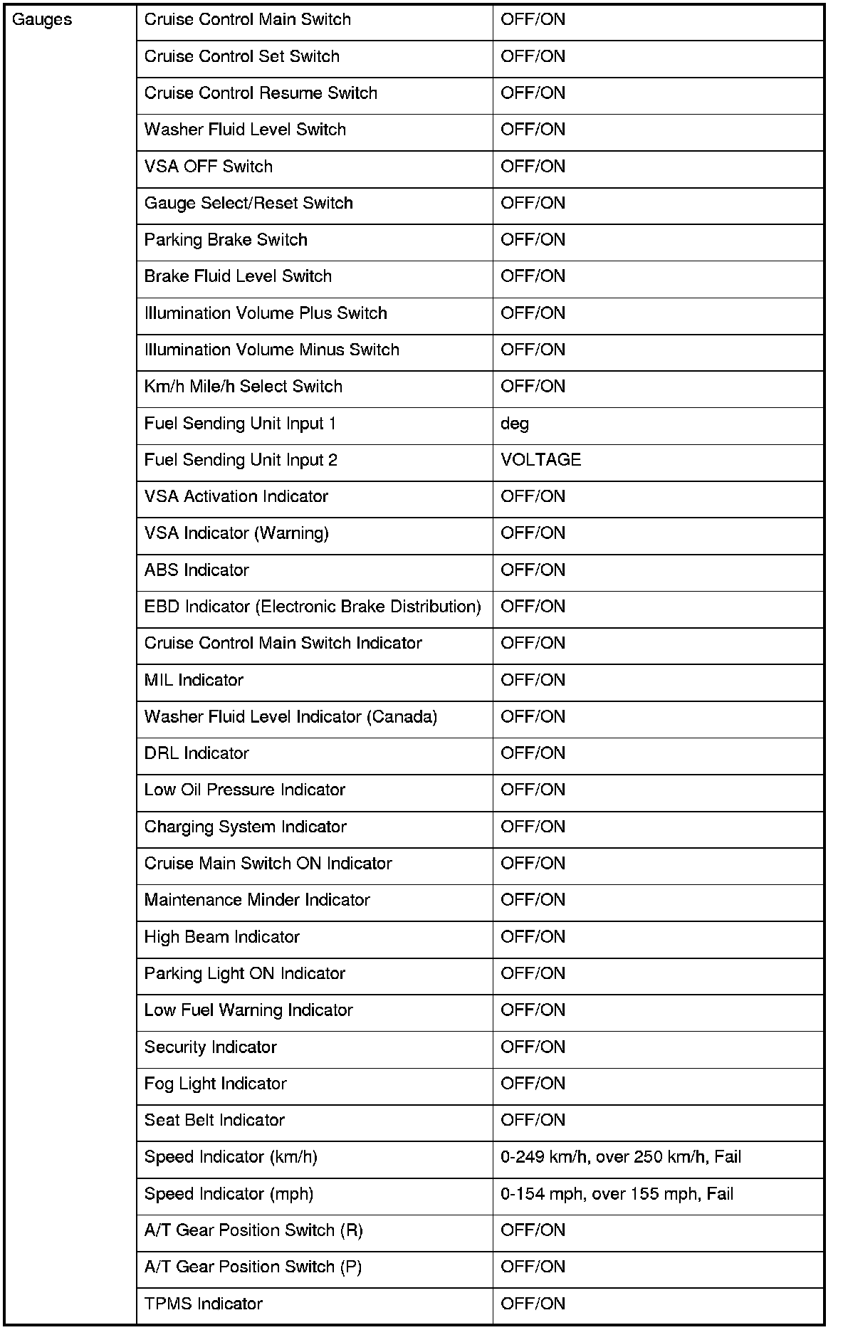 The ECUs on the CAN circuit send messages to each other. If there are any malfunctions on the network, the odometer/trip meter display on the gauge control module can indicate the error messages by entering the gauge self-diagnostic function.