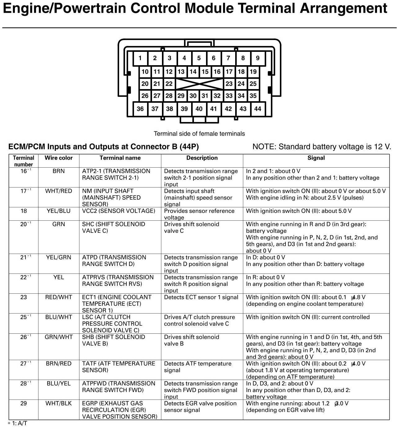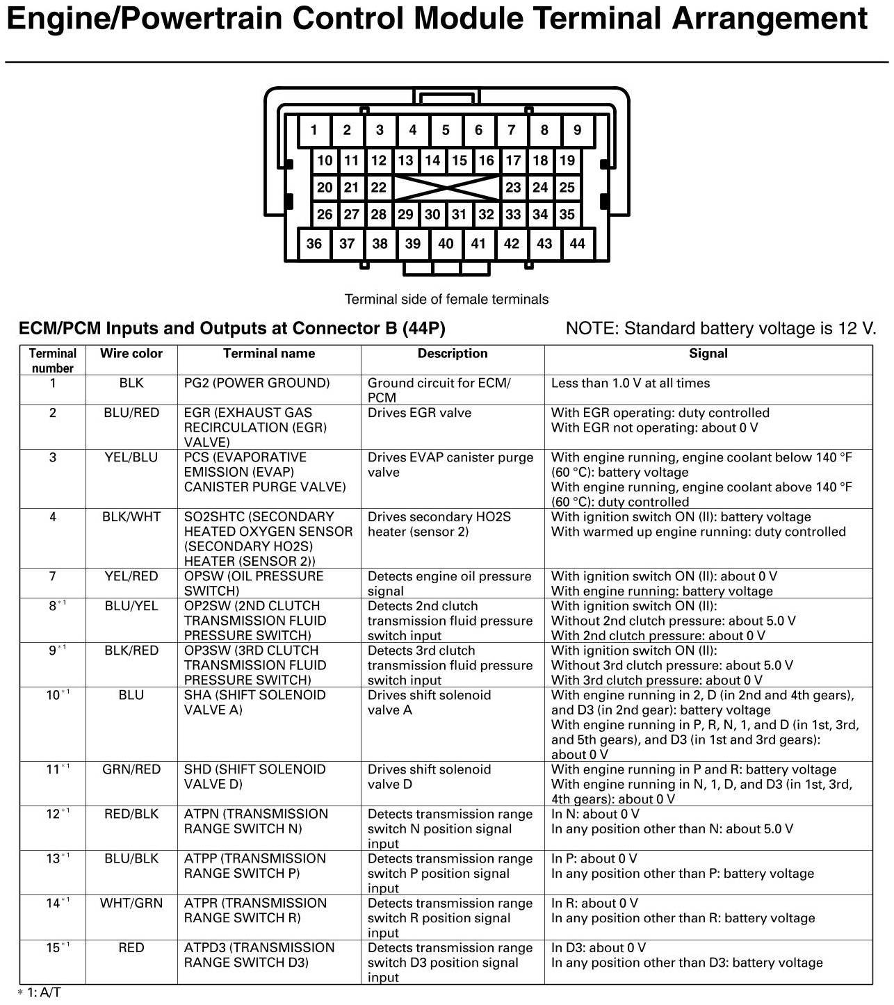 ECM/PCM Inputs And Outputs At Connector B (except Si, GX)