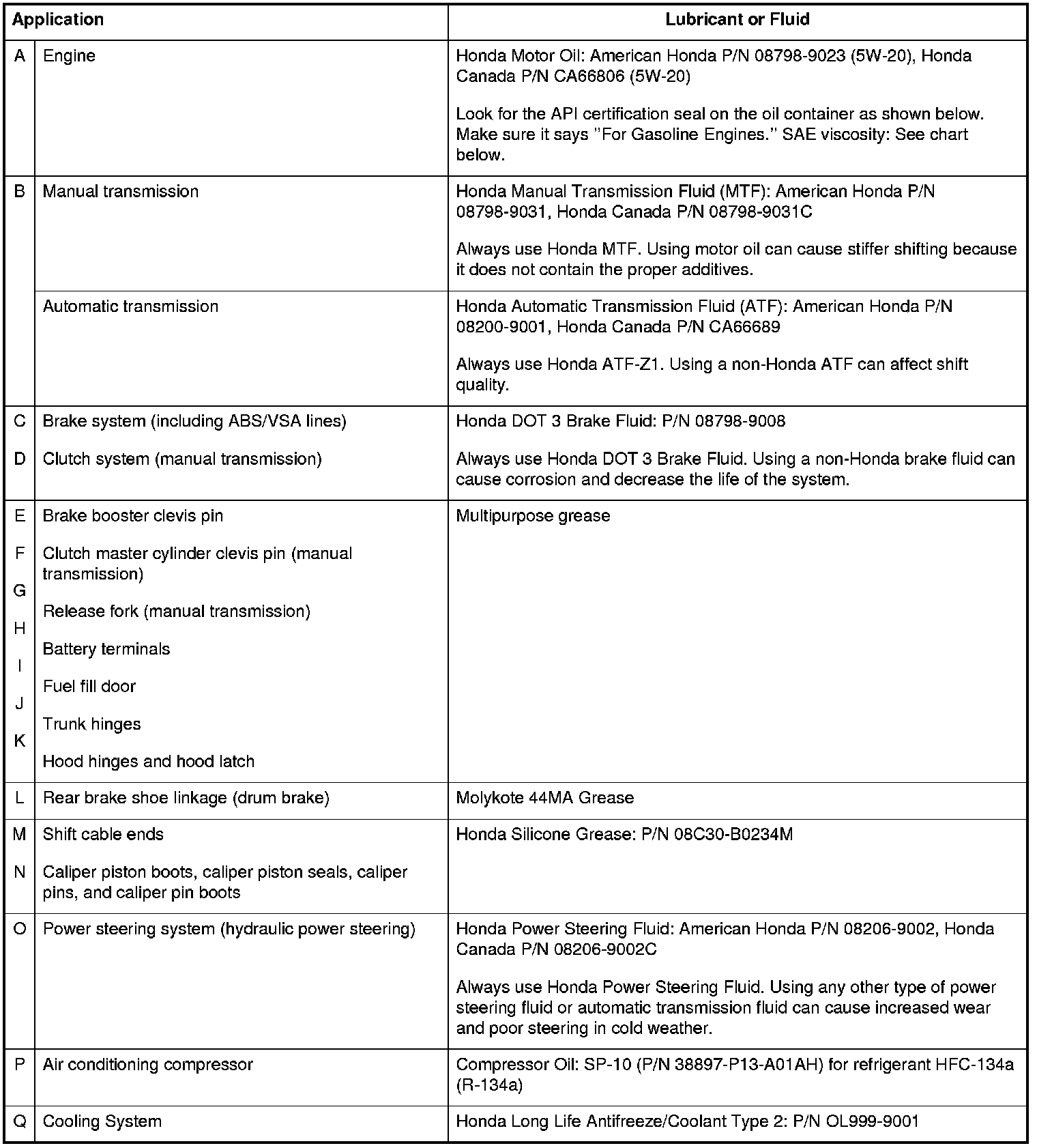 Home >> Honda >> 2010 >> Civic L4-1.8L >> Repair and Diagnosis >> Specifications >> Fluid Type Specifications >> Fluids