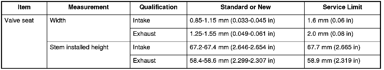 Valve Seat Specifications