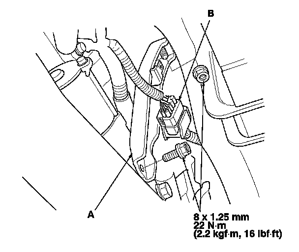 Install the intake manifold bracket (A), then install the connector (B) to the intake manifold bracket.