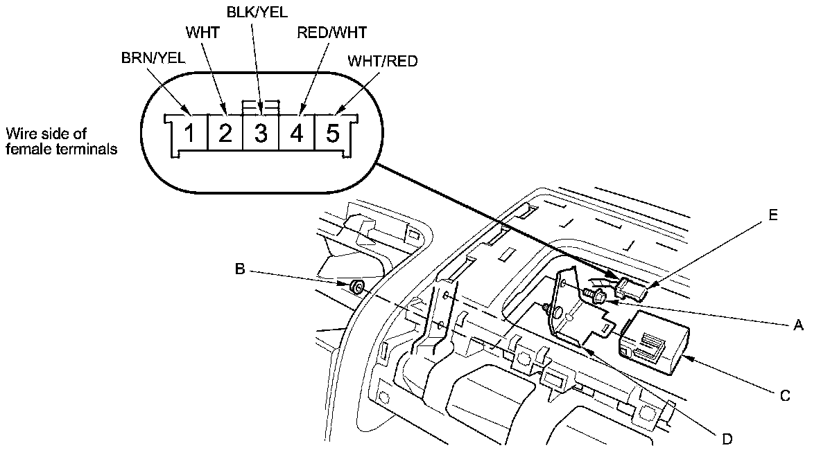 5. Disconnect the 5P connector (E) from the imoes unit.