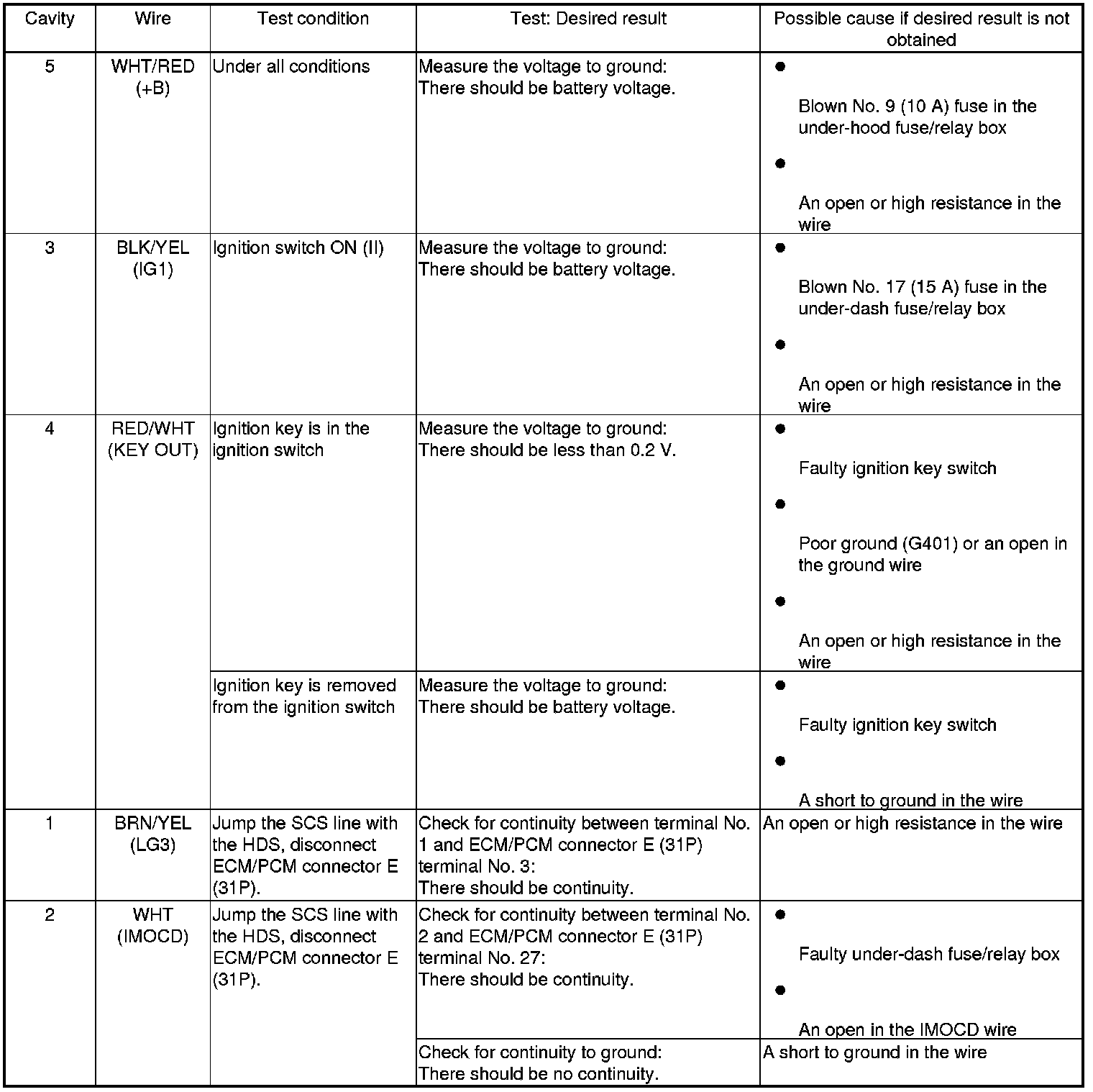 - If all the input tests prove OK, replace the imoes unit, then do the imoes unit registration with the HDS, and make sure the immobilizer indicator blinks correctly.