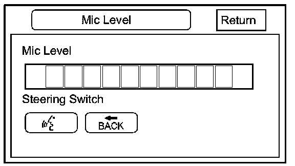 - Press the navigation TALK button on the steering wheel, wait until you hear a beep, and in a normal voice say "testing". The TALK indicator on the screen should momentarily turn green, and the text Now Recording... should appear in yellow. If the talk indicator shown on the screen does not briefly turn green, check the wiring from the steering wheel navigation TALK button to the audio-navigation unit. If there is no Mic Level movement when you speak, then you should check the wires running from the microphone in the roof console to the audio-navigation unit. If the wires are OK, the microphone must be faulty; replace the microphone located in roof console Service and Repair.