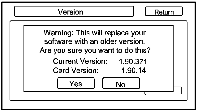 This screen shows the current version information for the navigation system software. In addition, this screen allows the loading of updated software if requested by the factory, or instructed by a Service Bulletin. Software may be loaded from a CD or a PC card.