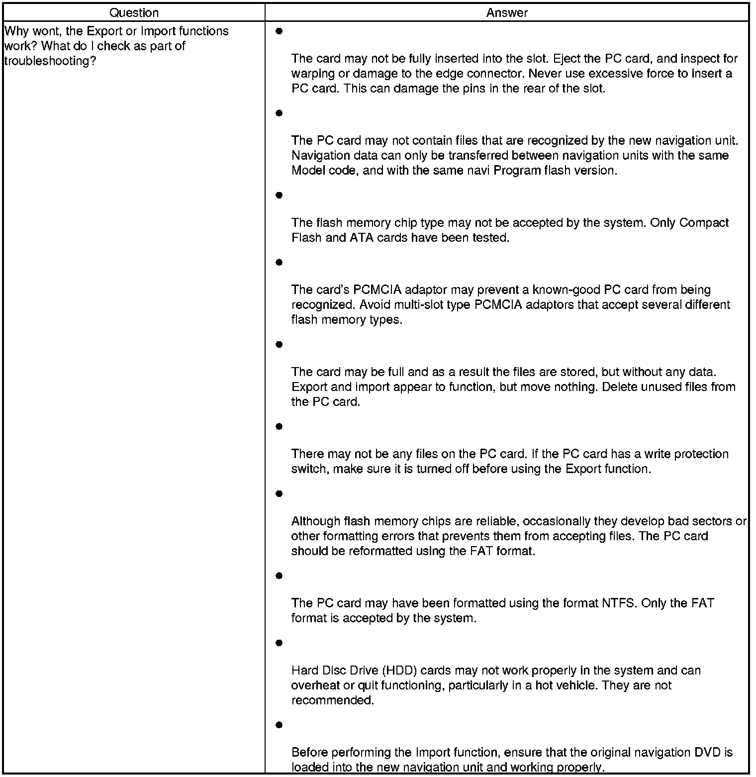 NOTE: If the EXPORT button is grayed out, check the PC card's edge connector, and the pins inside the audio-navigation unit (with a flashlight) for damage.
