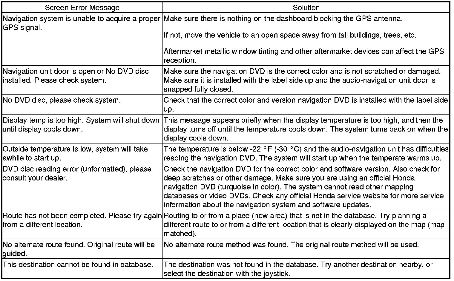 You may also see this error if a customer inserted a newer navigation DVD into their unit. This is why it is never recommended that you show a customer a new navigation DVD by inserting it into their current vehicle. Once the newer software is uploaded, they will see an error message when they reinstall their original navigation DVD.