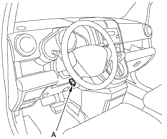 2. With the ignition switch in LOCK (0), connect the HDS to the data link connector (DLC) (A) under the driver's side of the dashboard.