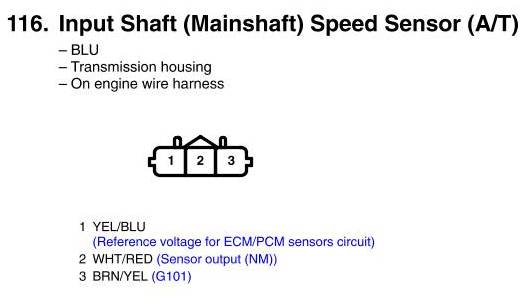 View 116 - Input Shaft (Mainshaft) Speed Sensor Connector View (A/T)