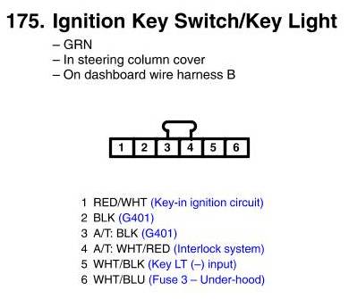 View 175 - Ignition Key Switch/Key Light Connector View
