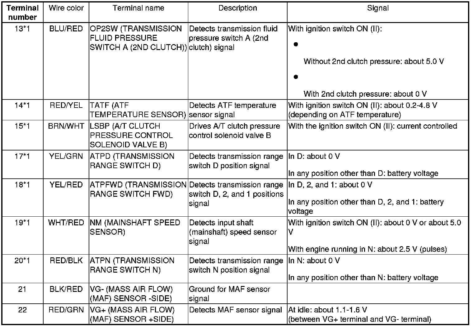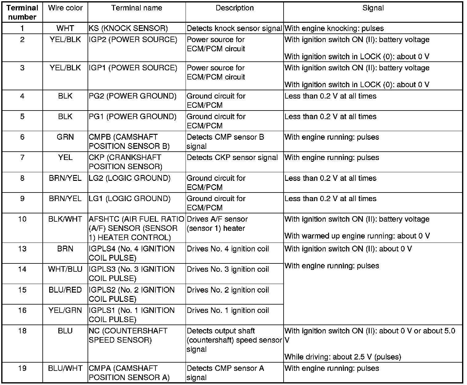 ECM/PCM Inputs and Outputs at ECM/PCM Connector C (22P)
