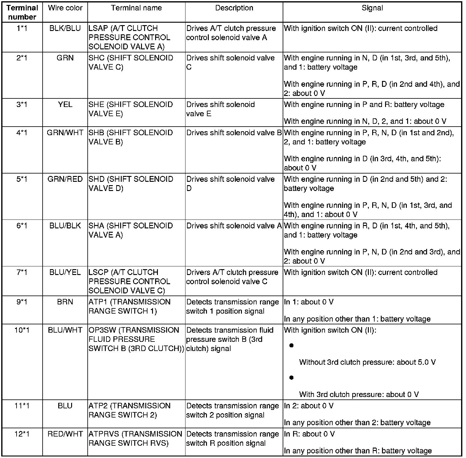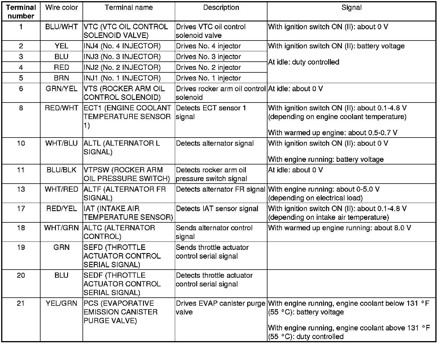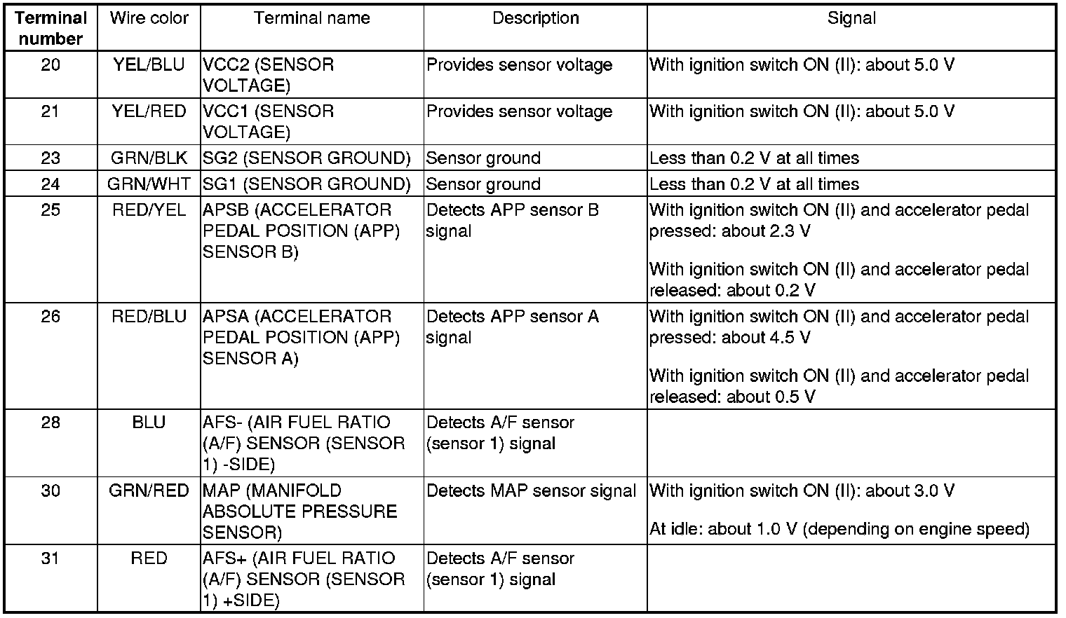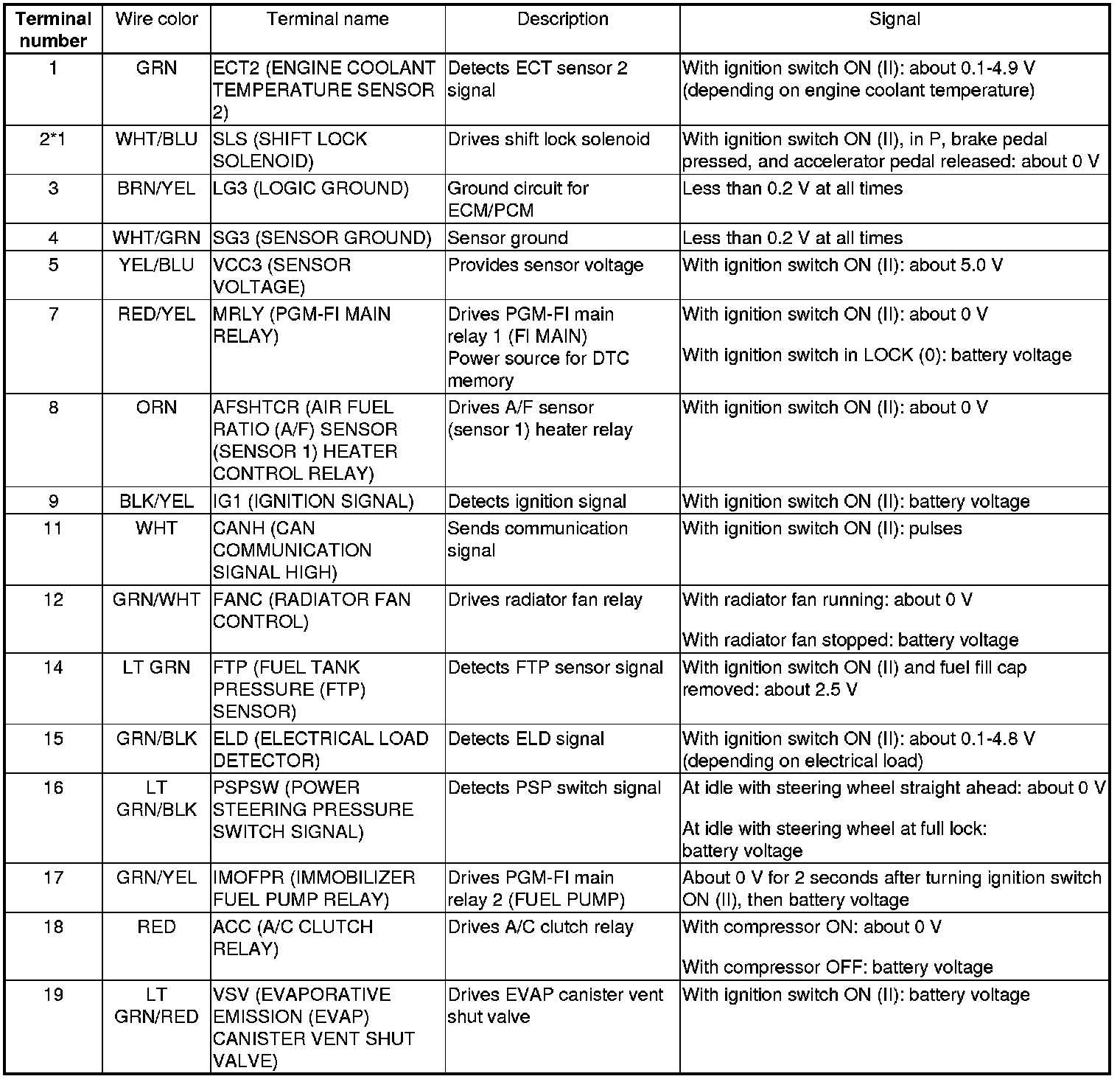 ECM/PCM Inputs and Outputs at ECM/PCM Connector A (31P)