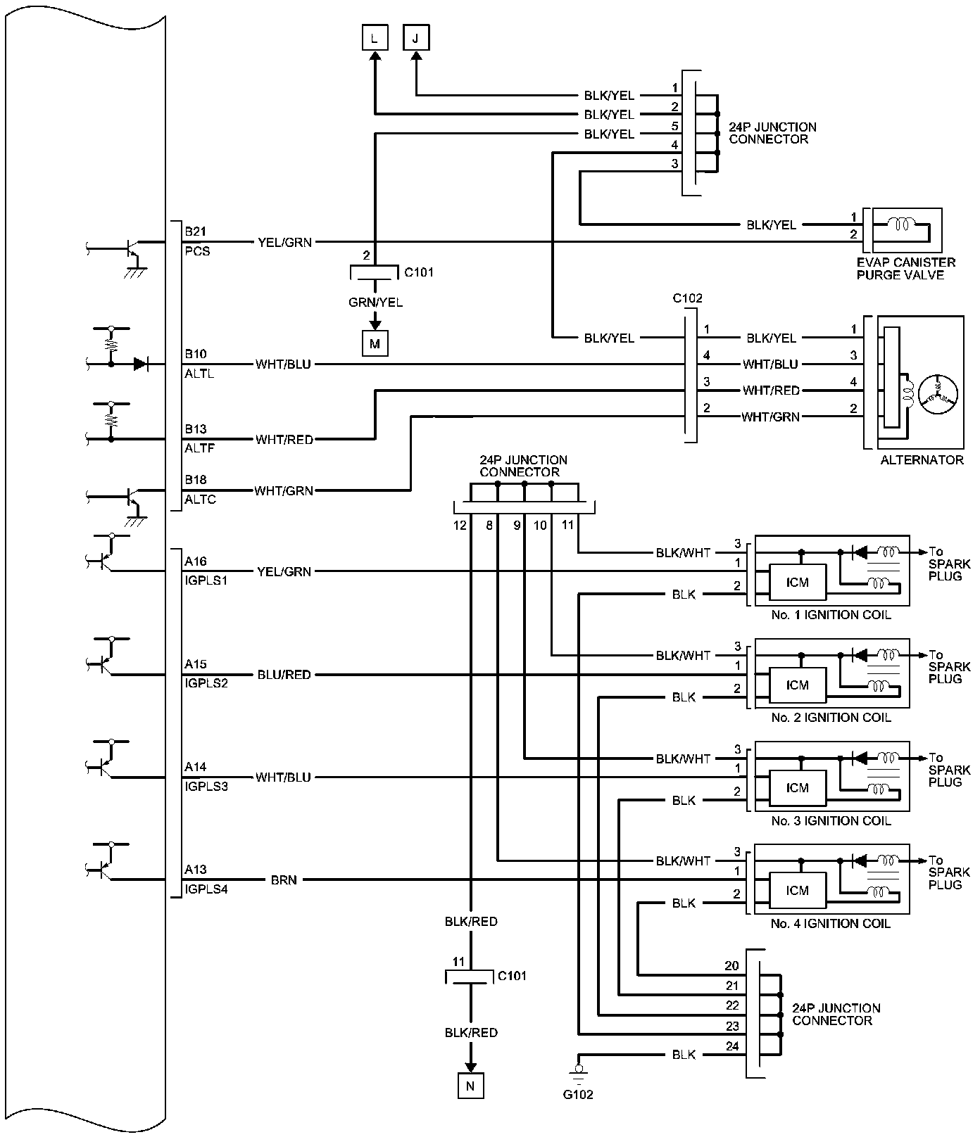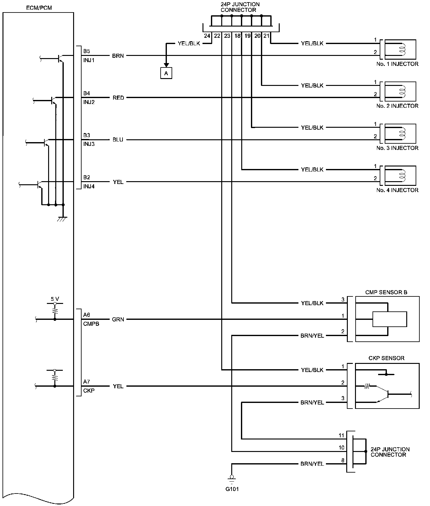 ECM/PCM Inputs and Outputs at ECM/PCM Connector B (24P)