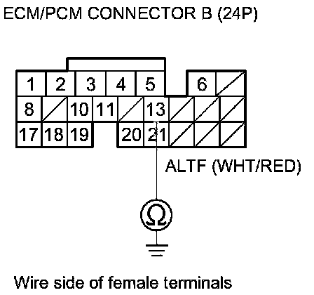 8. Check for continuity between body ground and ECM/PCM connector terminal B13.