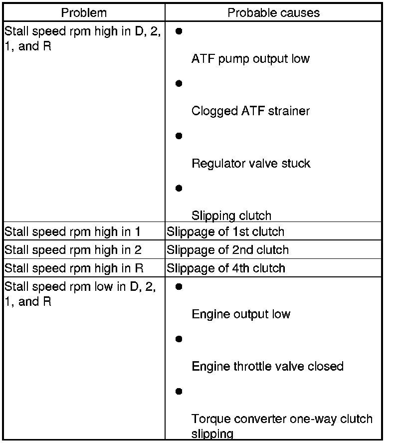 - Stall speed test results should be the same in D, 2, 1, and R.