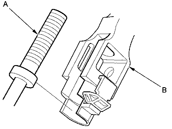 7. Separate the shift cable end (A) from the shift cable end holder (B).