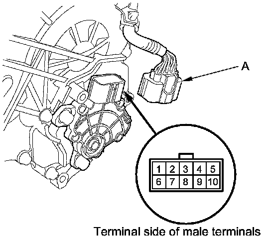 5. Disconnect the transmission range switch connector (A).