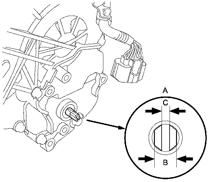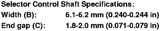9. If the measurement of the selector control shaft end is within the specifications, replace the transmission range switch Service and Repair. If the measurement is out of the specifications, repair the selector control shaft end, and recheck the transmission range switch continuity.