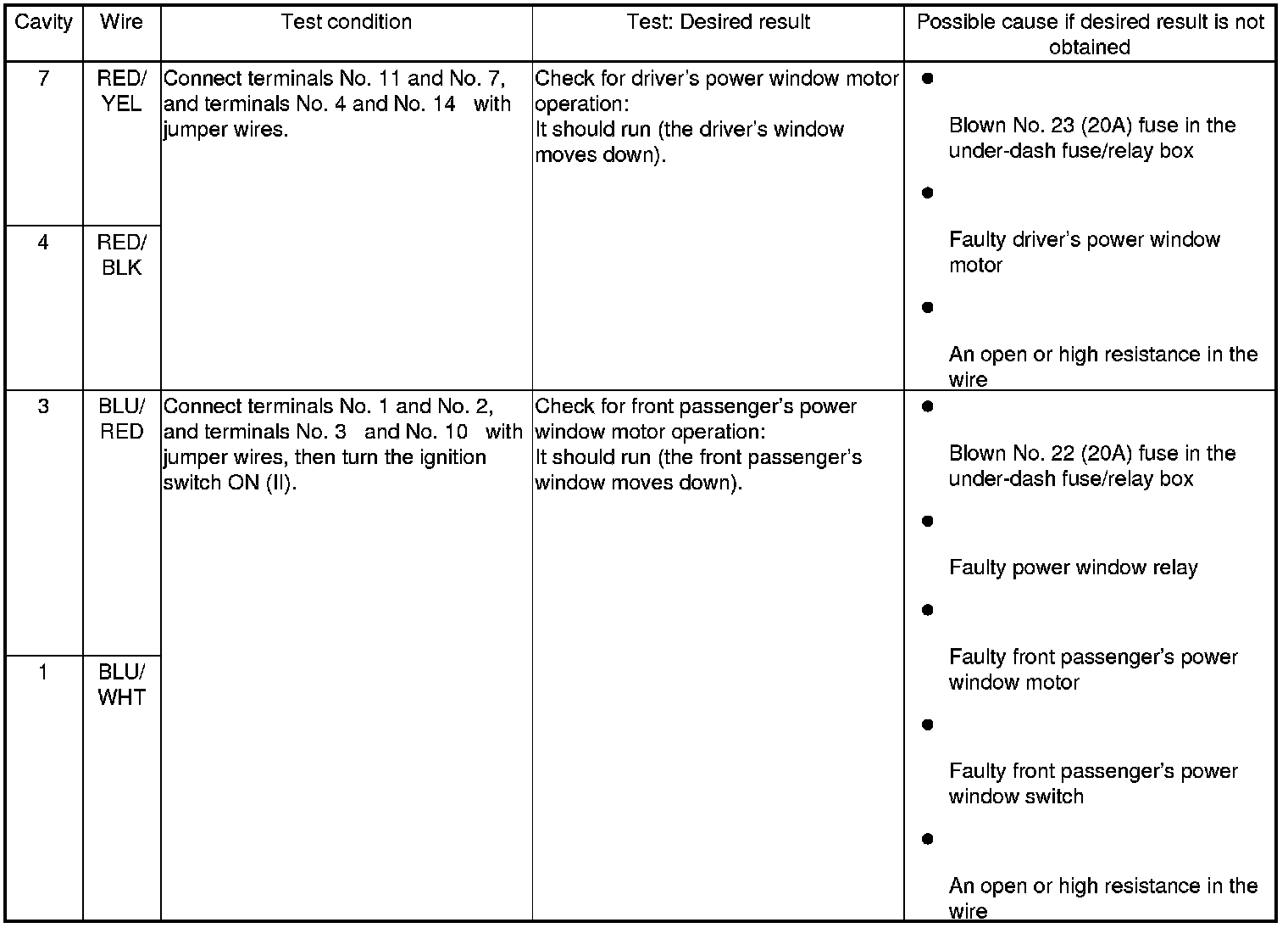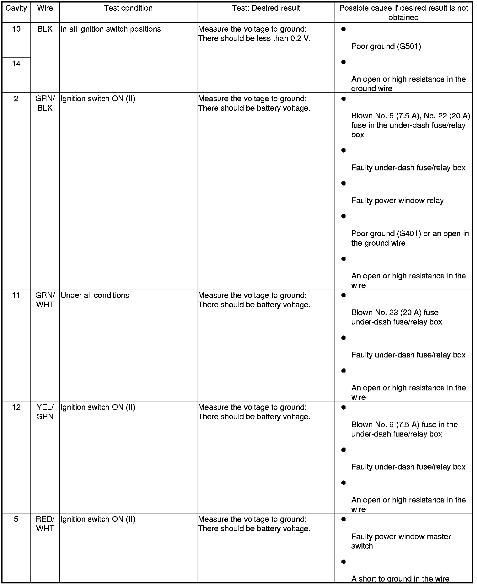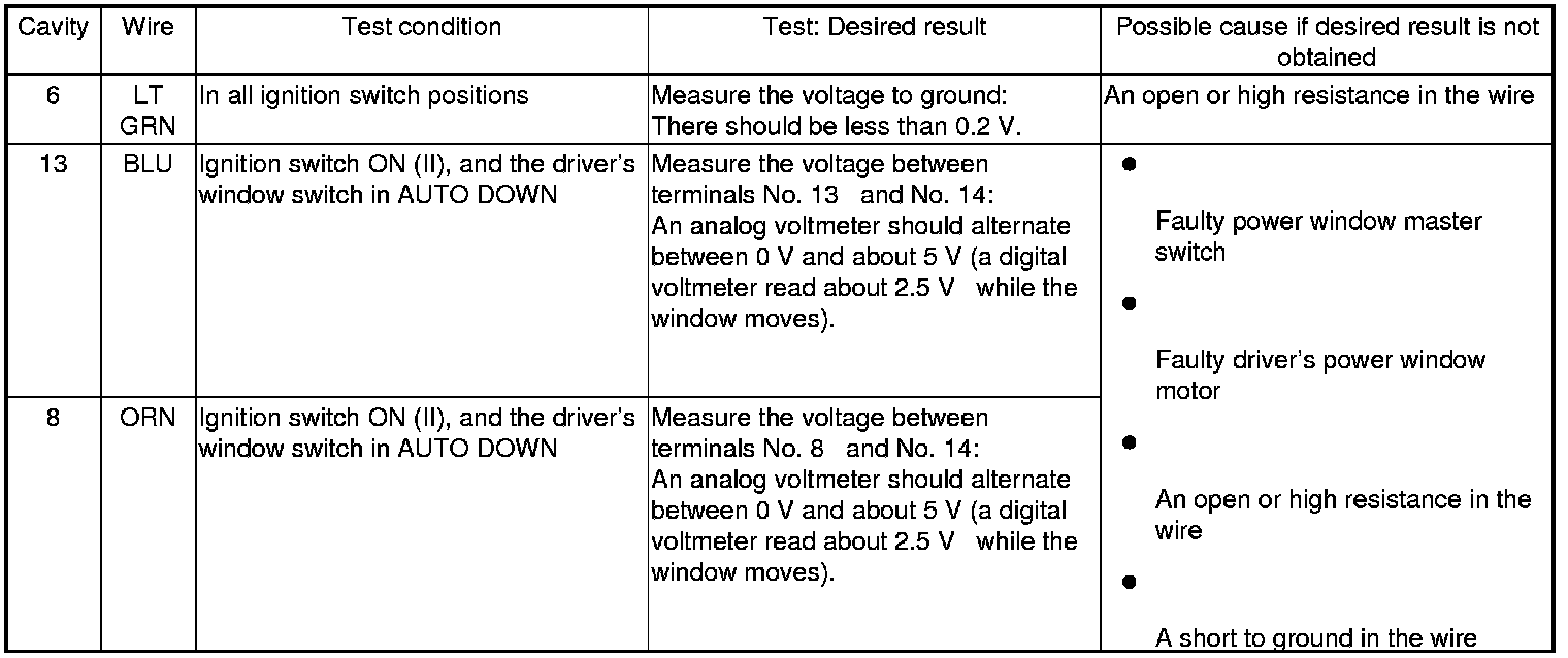Home >> Honda >> 2010 >> Element 2WD L4-2.4L >> Repair and Diagnosis >> Windows and Glass >> Windows >> Testing and Inspection >> Component Tests and General Diagnostics >> Power Window Master Switch Input Test