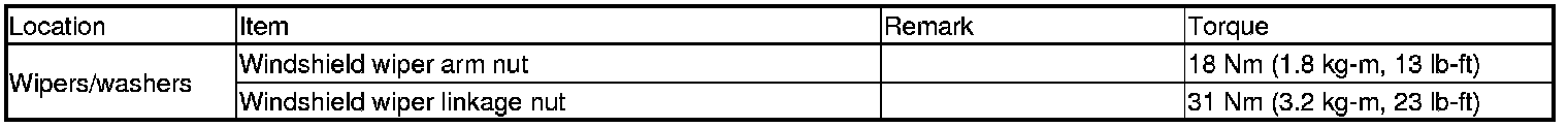 Wiper and Washer Systems: Specifications