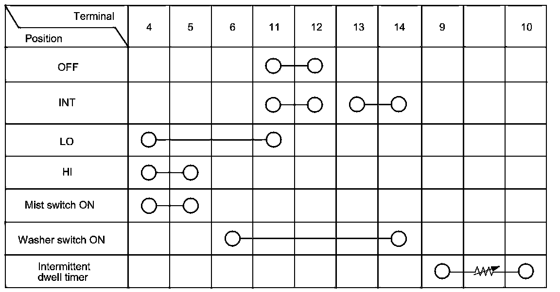 - If the terminals look OK, check for continuity between the terminals in each switch position according to the tables. If the continuity is not as specified, replace the switch.