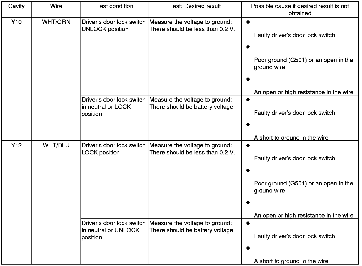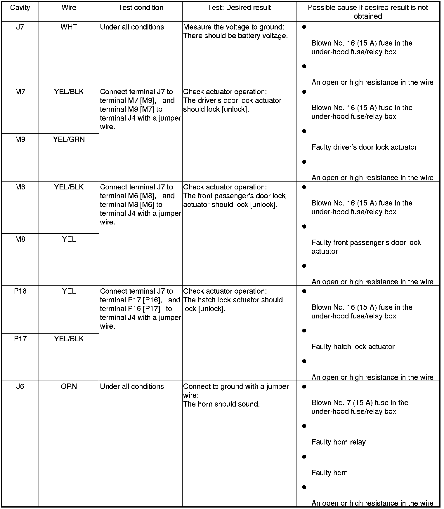 Keyless/Power Door Locks (Multiplex Control Unit) Input Test