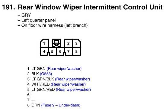 View 191 - Rear Window Wiper Intermittent Control Unit Connector View