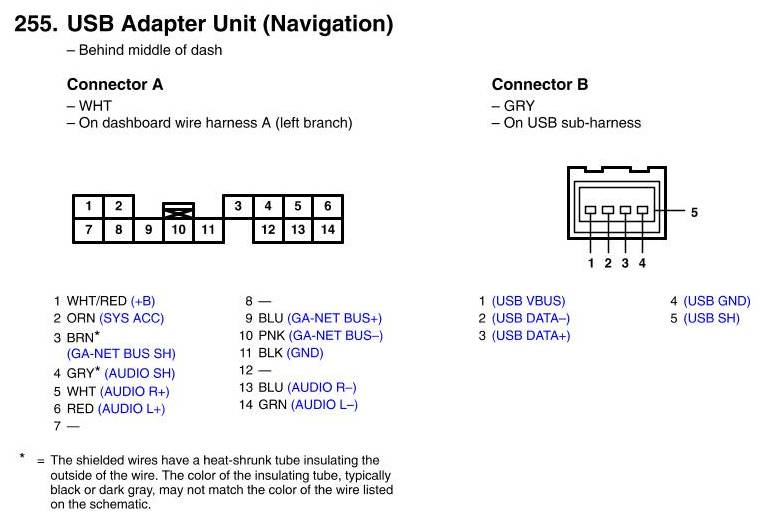 View 255 - USB Adapter Unit Connector View (Navigation)