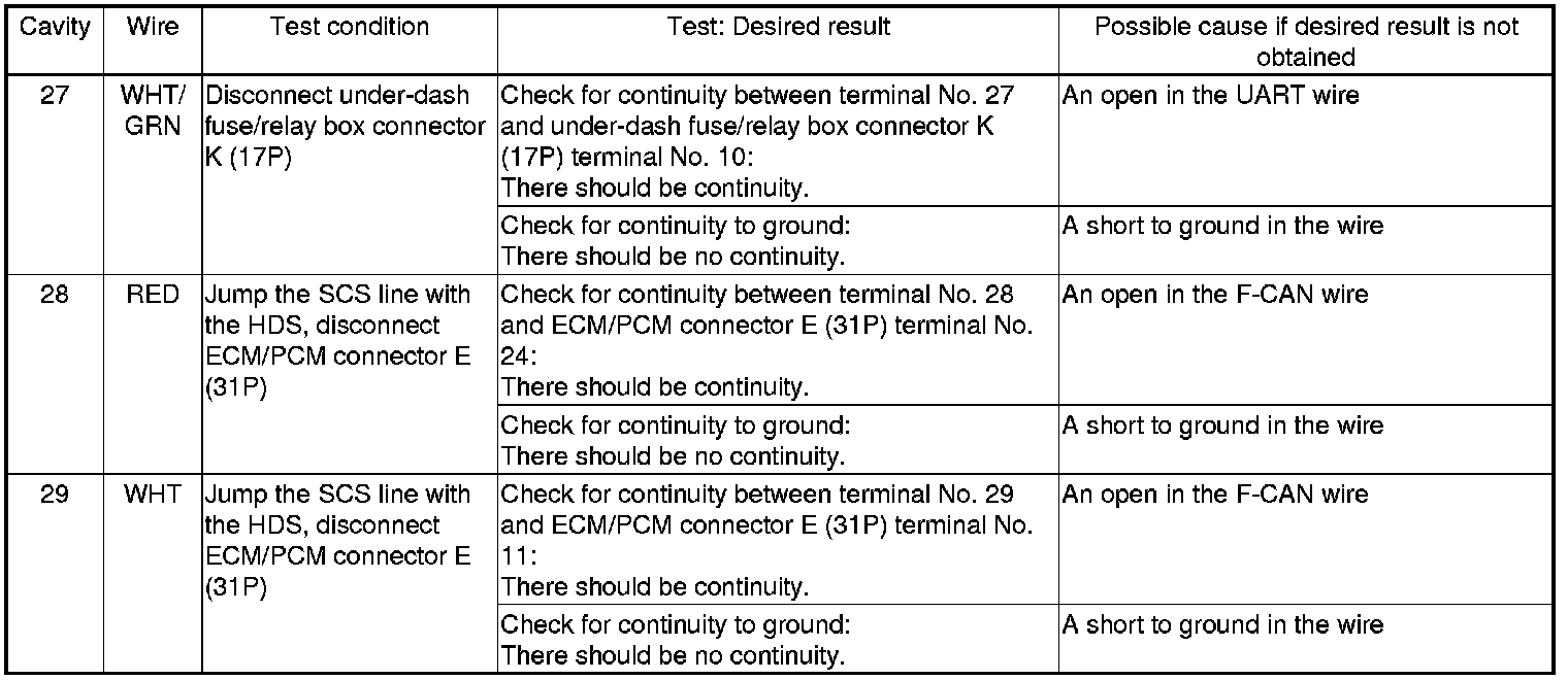11. Reconnect the connectors to the under-dash fuse/relay box, and do the following input tests: