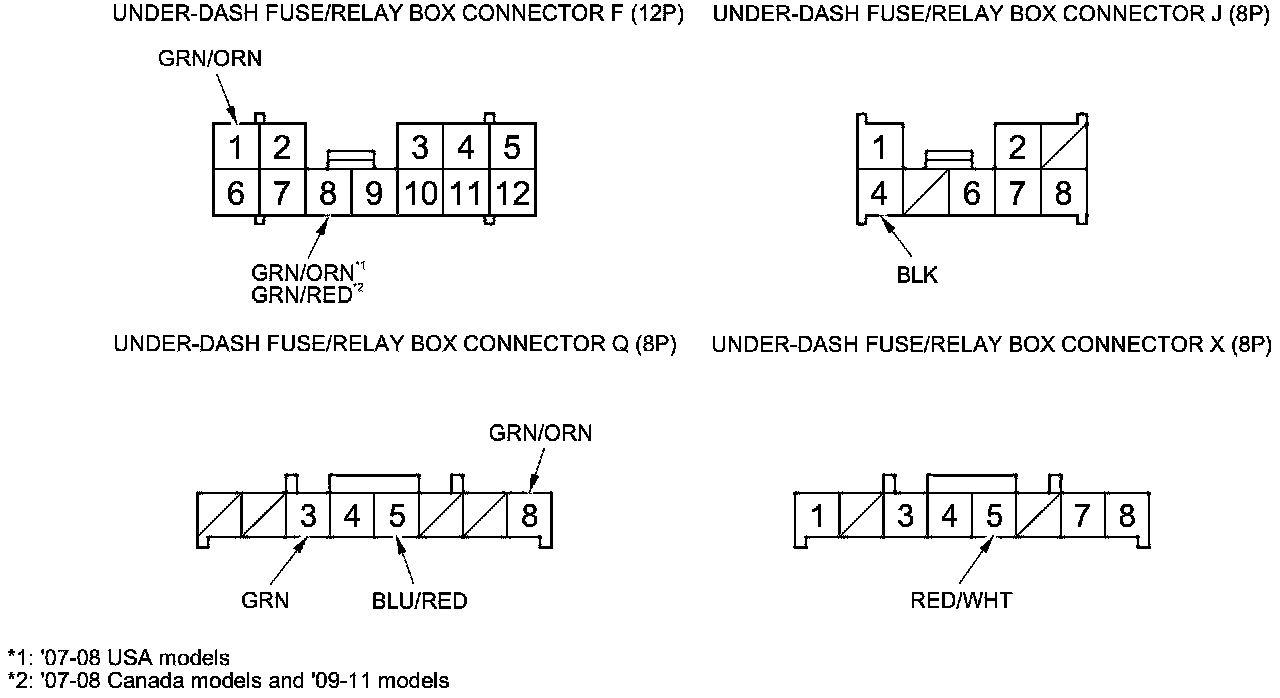 8. Disconnect under-dash fuse/relay box connectors F, J, Q, and X.