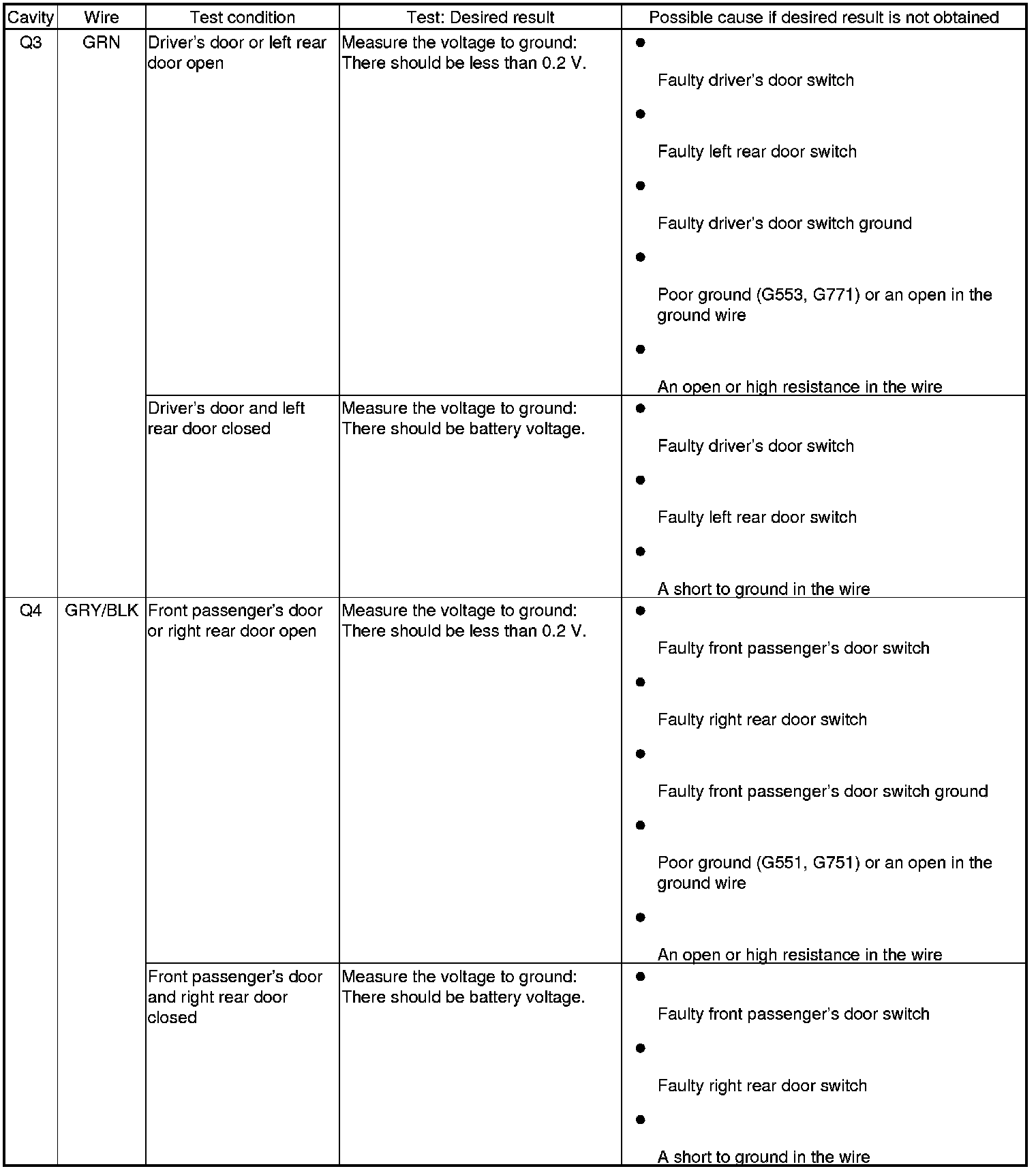 Home >> Honda >> 2010 >> Element 4WD L4-2.4L >> Repair and Diagnosis >> Lighting and Horns >> Testing and Inspection >> Entry Lights Control System (Multiplex Control Unit) Input Test