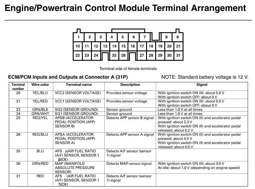 ECM/PCM Inputs And Outputs At Connector A