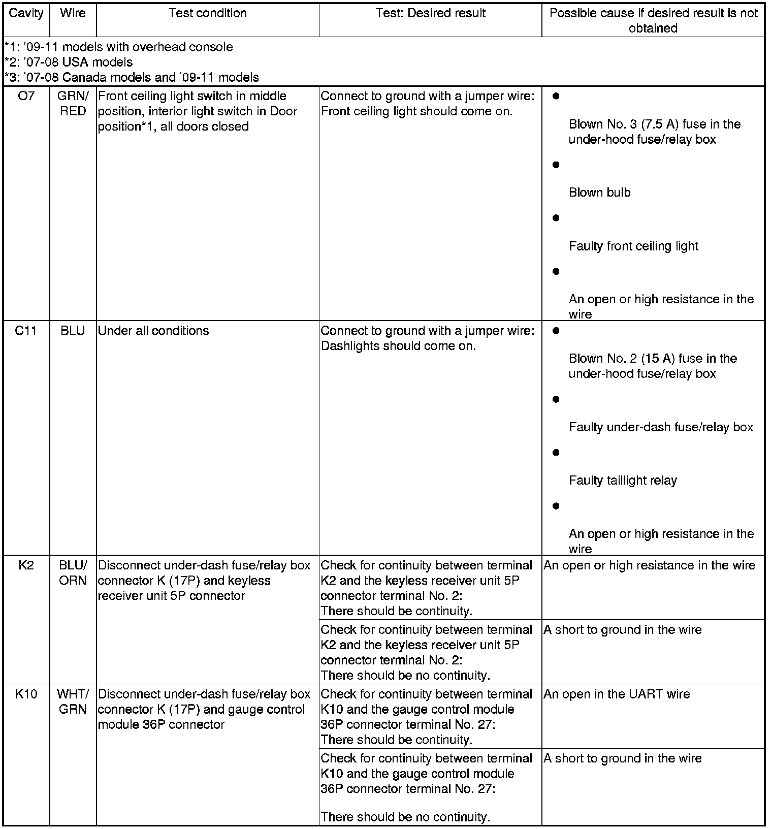 4. Reconnect the connectors to the under-dash fuse/relay box, and do the following input tests: