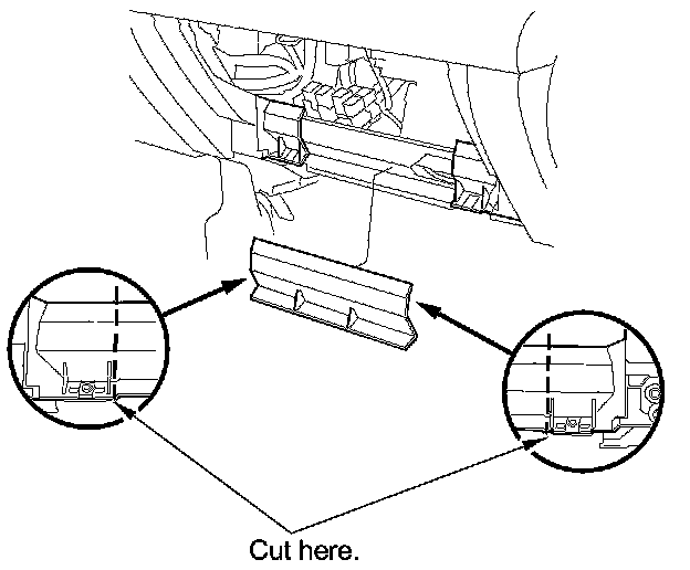 11. Cut the plastic cross brace in the glove box opening with diagonal cutters in the area shown, and discard it.