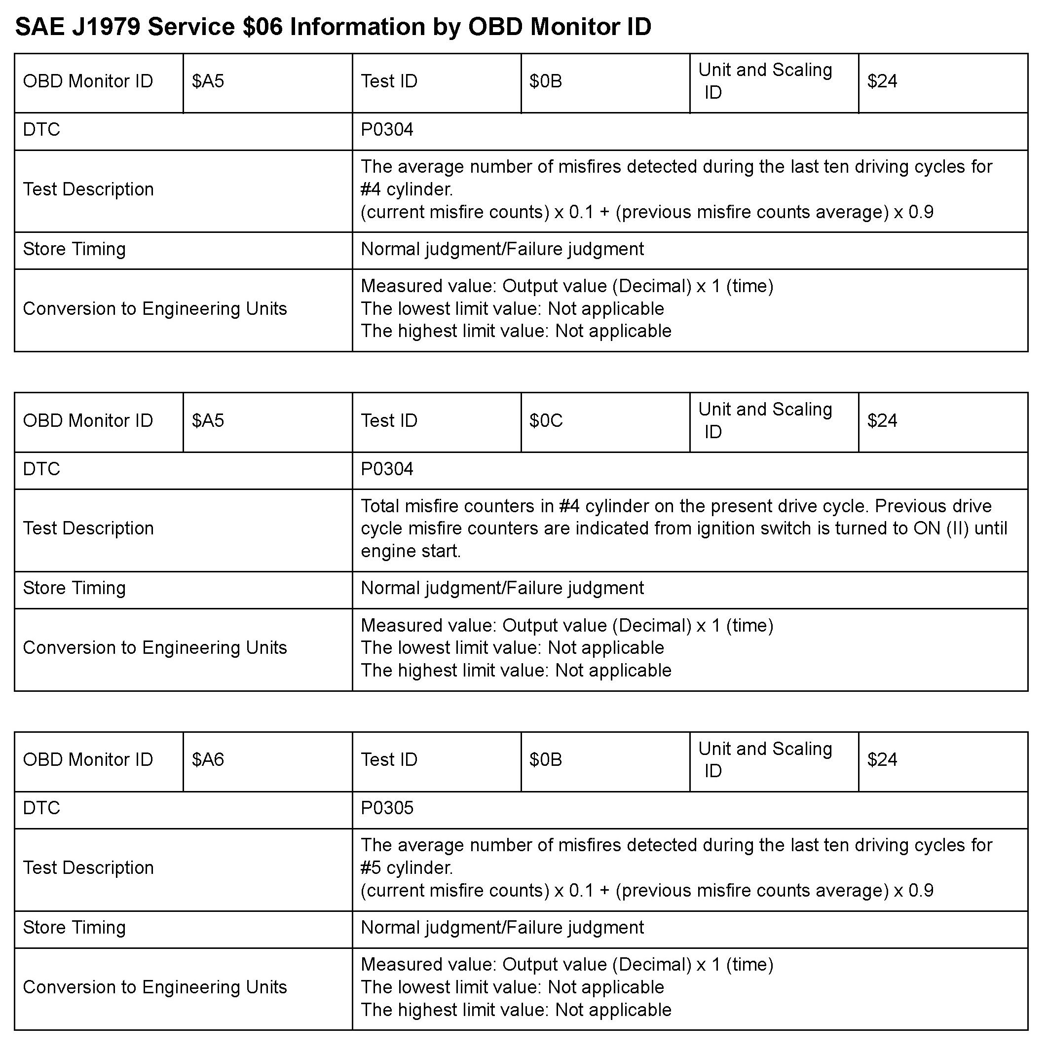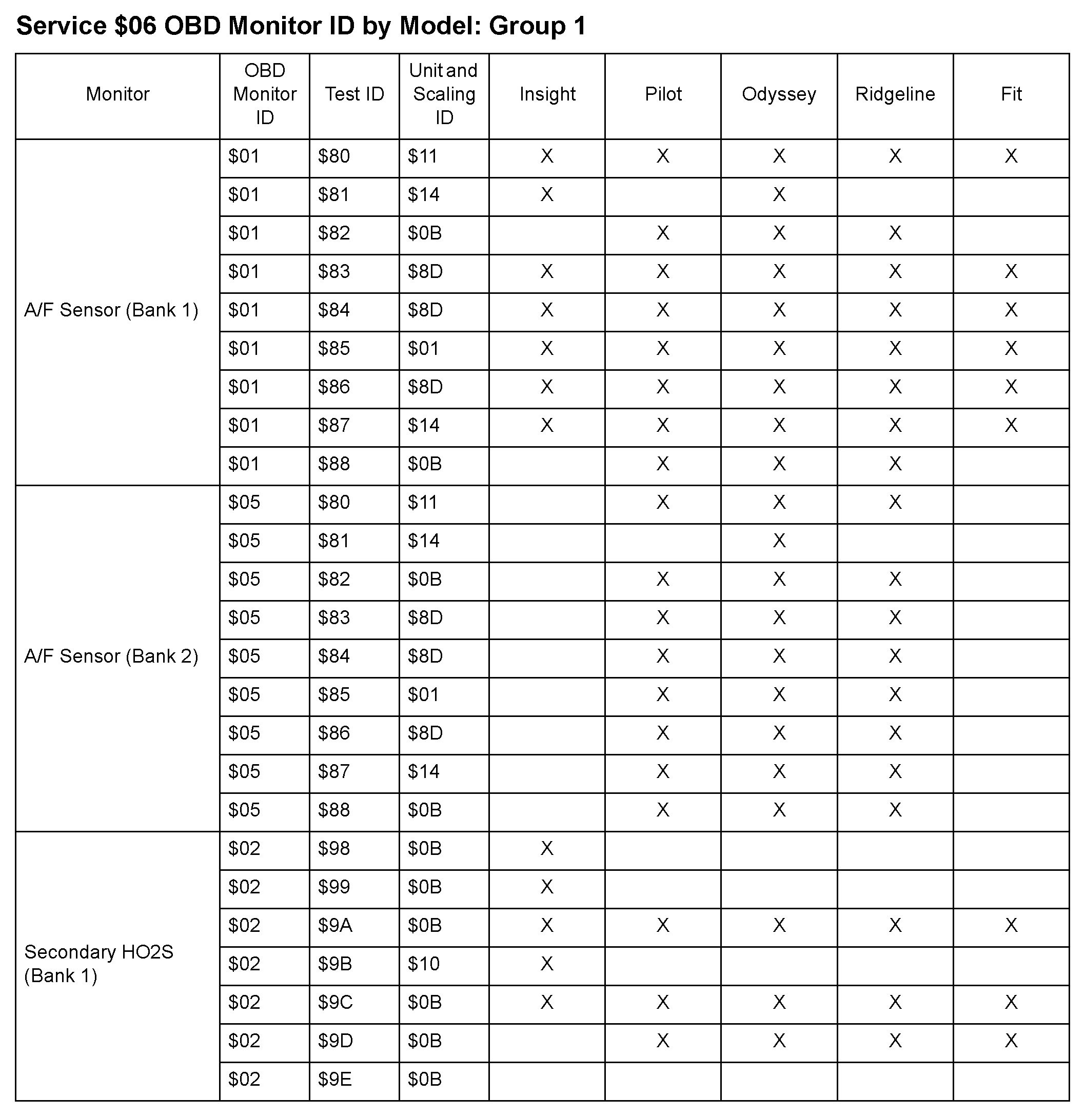 SAE J1979 Mode/Service $06 Test Information: All 2010 Hondas