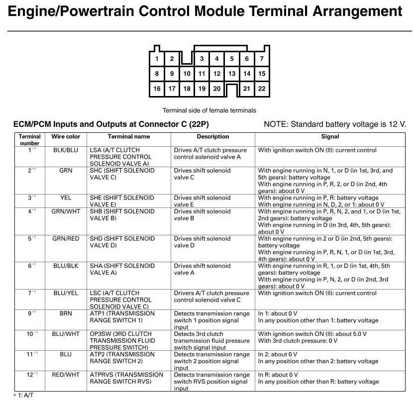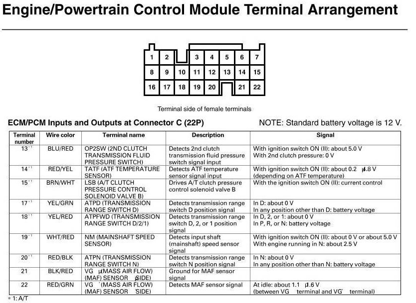 ECM/PCM Inputs And Outputs At Connector C
