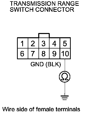 27. Check for continuity between transmission range switch connector terminal No. 10 and body ground.