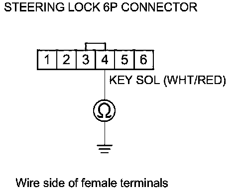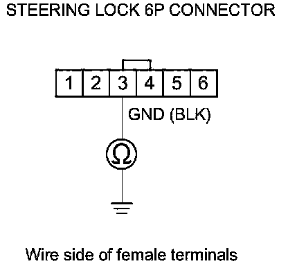 8. Check for continuity between steering lock 6P connector terminal No. 4 and body ground.