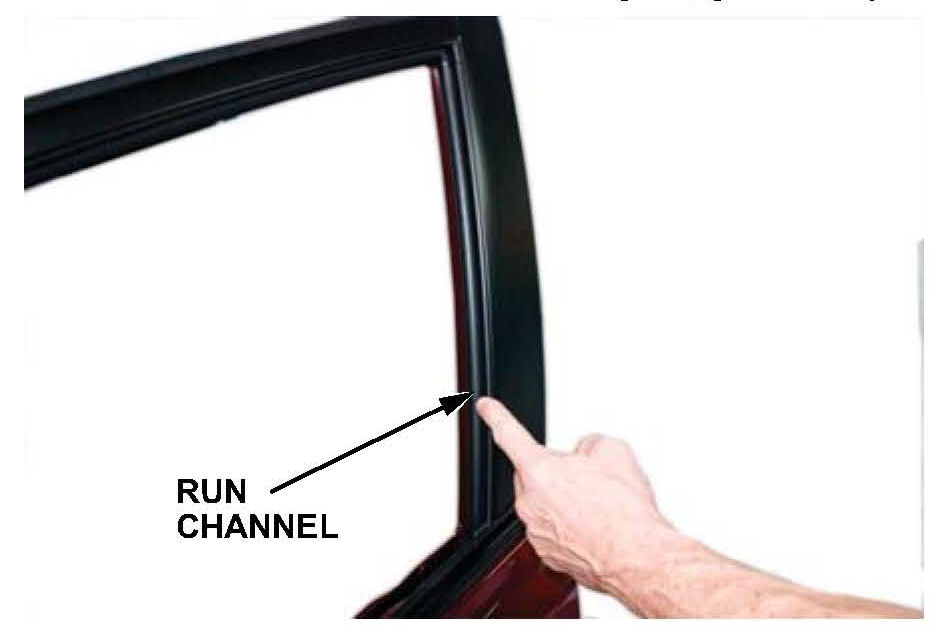 4. Inspect the run channel alignment, both inside and outside the door. Pay close attention just below the door skin; this is a common area for the run channel to be pinched.