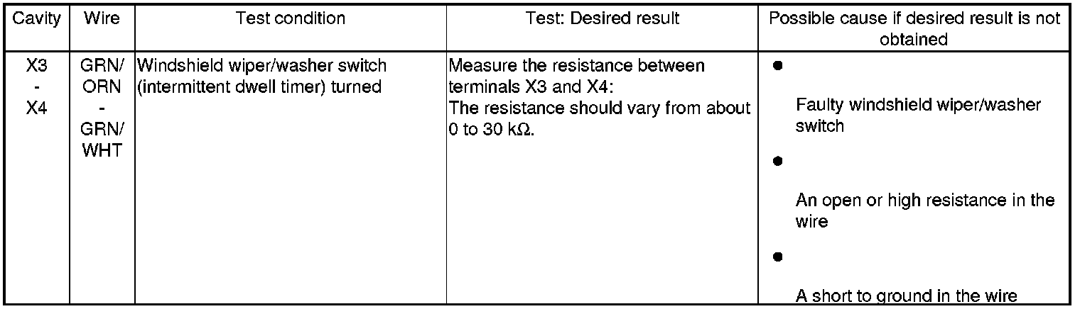 Wipers/Washers (Multiplex Control Unit) Input Test