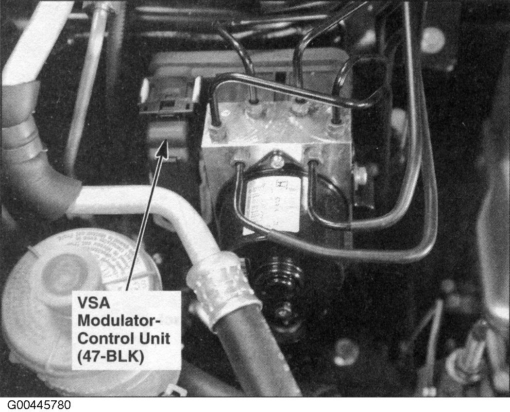 VSA Modulator-Control Unit Right rear corner of engine compartment. See Figure.