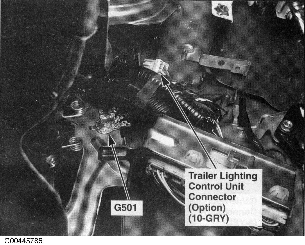 Trailer Lighting Control Unit Connector Under left side of dash. See Figure.