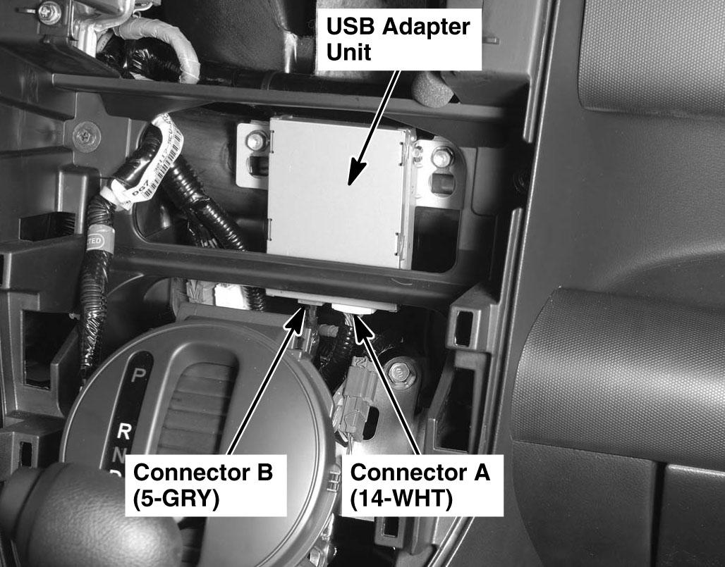 USB Adapter Unit Behind middle of dash. See Figure.