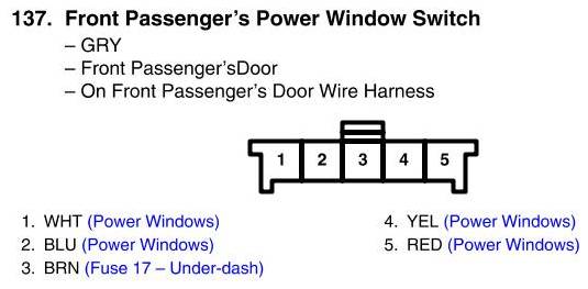 View 137 - Front Passenger's Power Window Switch Connector View