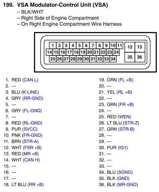 View 199 - VSA Modulator-Control Unit Connector View (VSA)