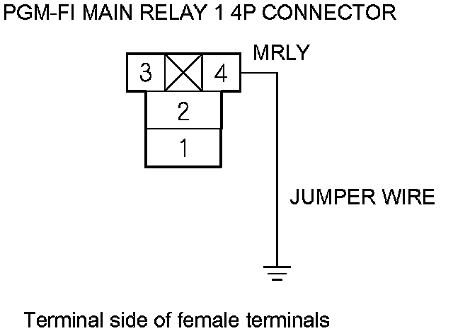 69. Connect PGM-FI main relay 1 4P connector terminal No. 1 to body ground with a jumper wire.