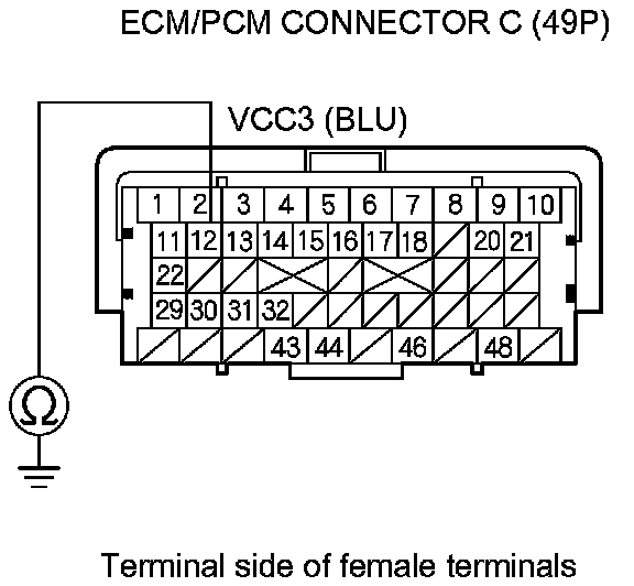 78. Check for continuity between ECM/PCM connector terminal C12 and body ground.